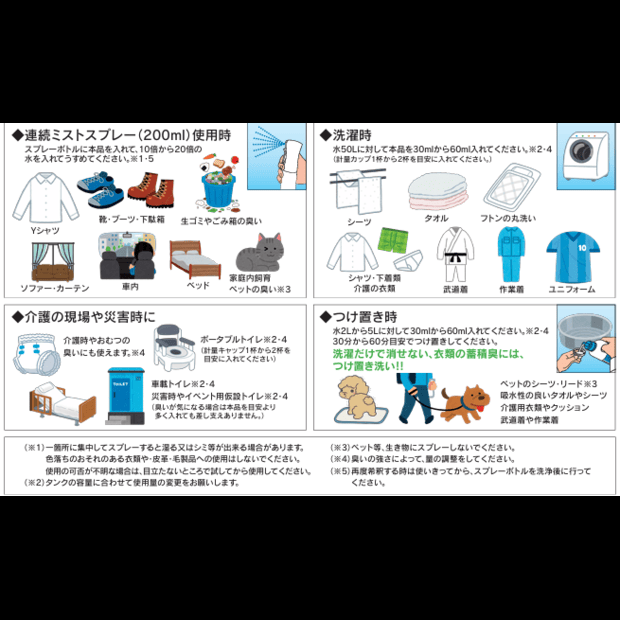 ● 臭いの染み込んだ衣類等は、本品を投入してつけ置き洗いを